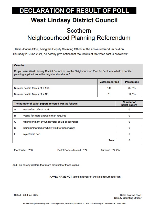 Scothern NP review – Referendum – 20 June 2024 West Lindsey District Council (WLDC) Information Statement and Specified Documents The Neighbourhood Planning (Referendums) Regulations 2012