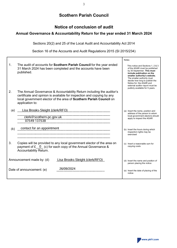 • Notice of Conclusion of Audit 2023/24